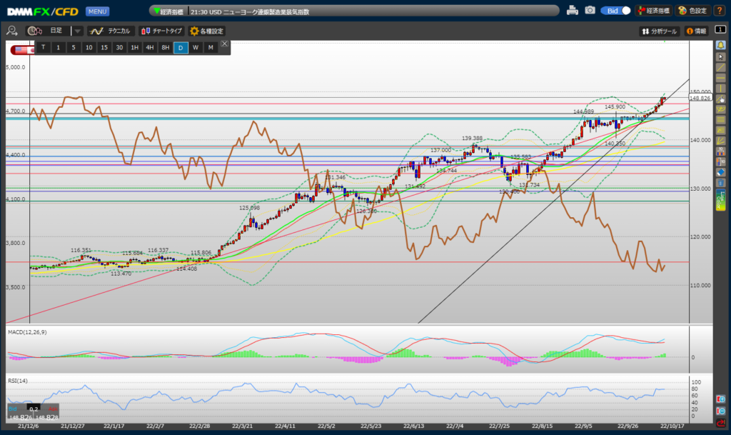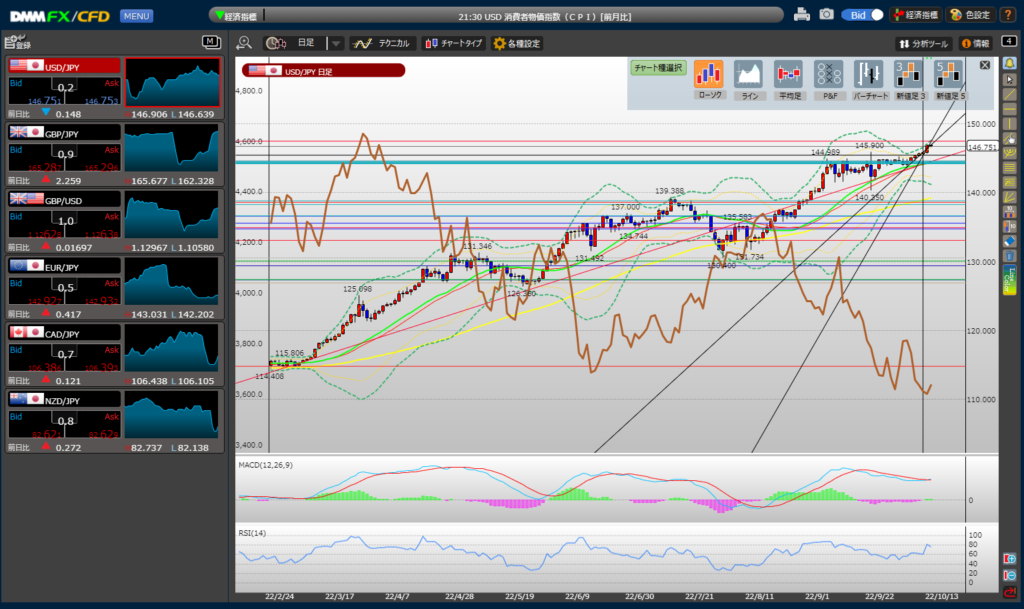 10月13日のチャート分析(21時30分のCPIに注目)