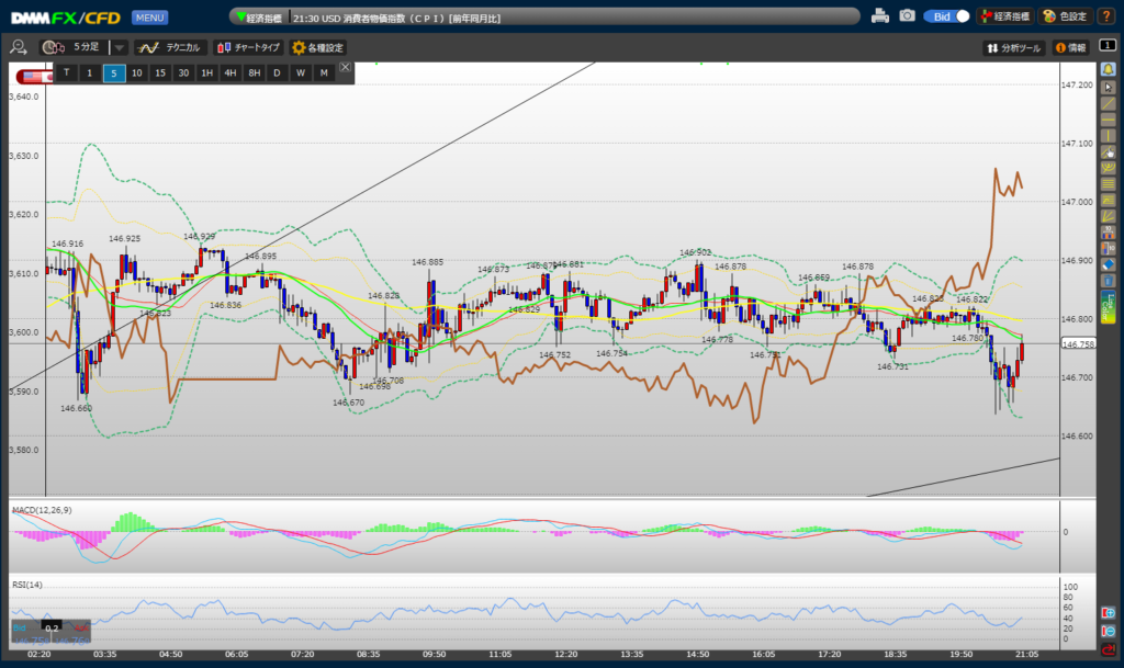 5分足はレンジ相場