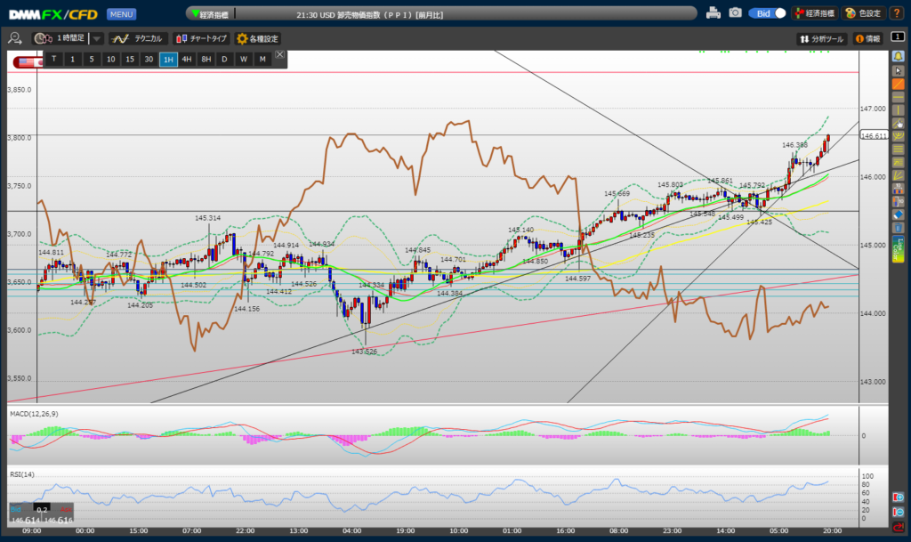 相場の変動性を一定期間のデータから測定し、今後の価格変動範囲を予測するという統計学に基づいて分析するテクニカル指標です。ボリンジャーバンドは、σ(シグマ)という標準偏差で計算し、±2σ、±1σの線で構成されますが、±3σの線を加える場合もあります