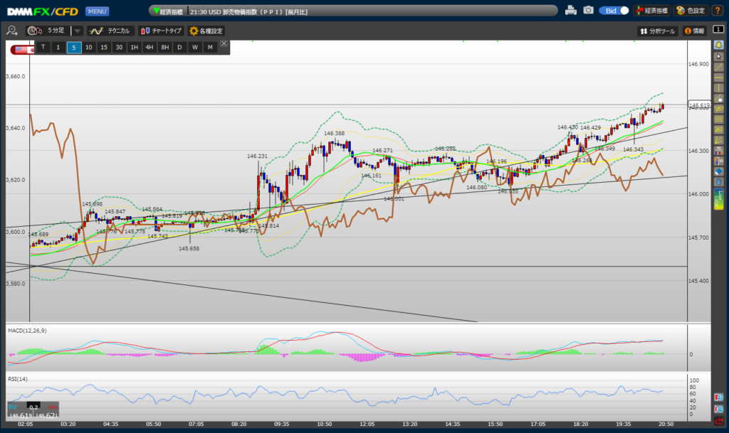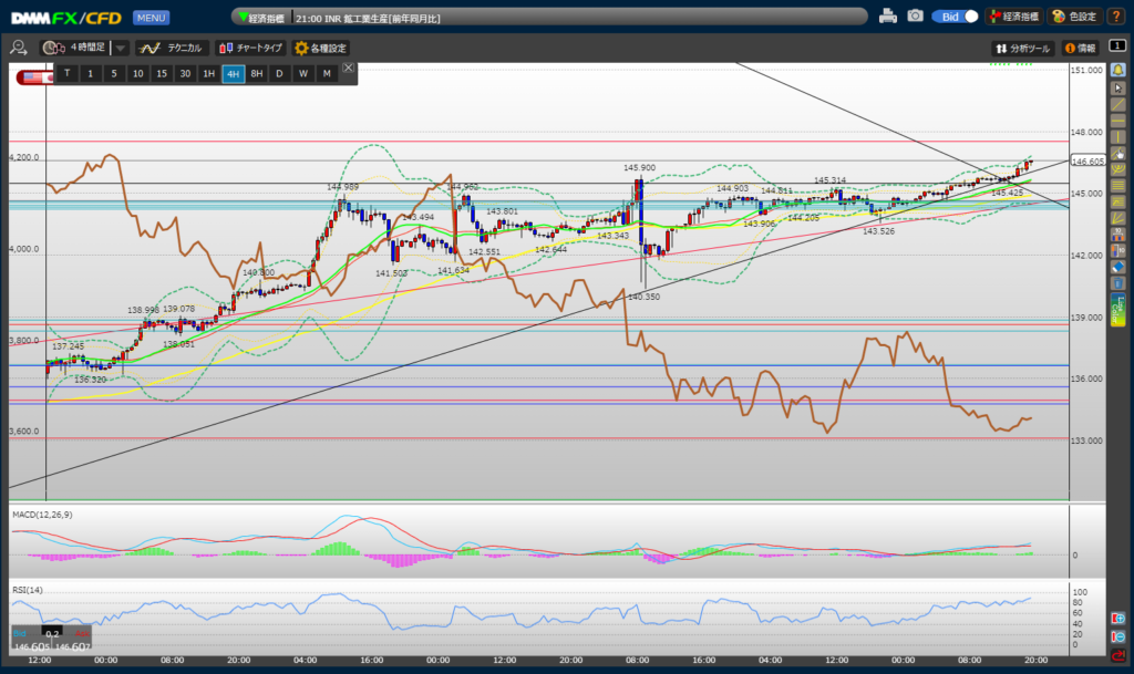 移動平均線を活用したテクニカル指標で、売買タイミングなどを読み取れます。MACDでは一般的に、2つの移動平均線を使用して買いと売りのタイミングを判断します。